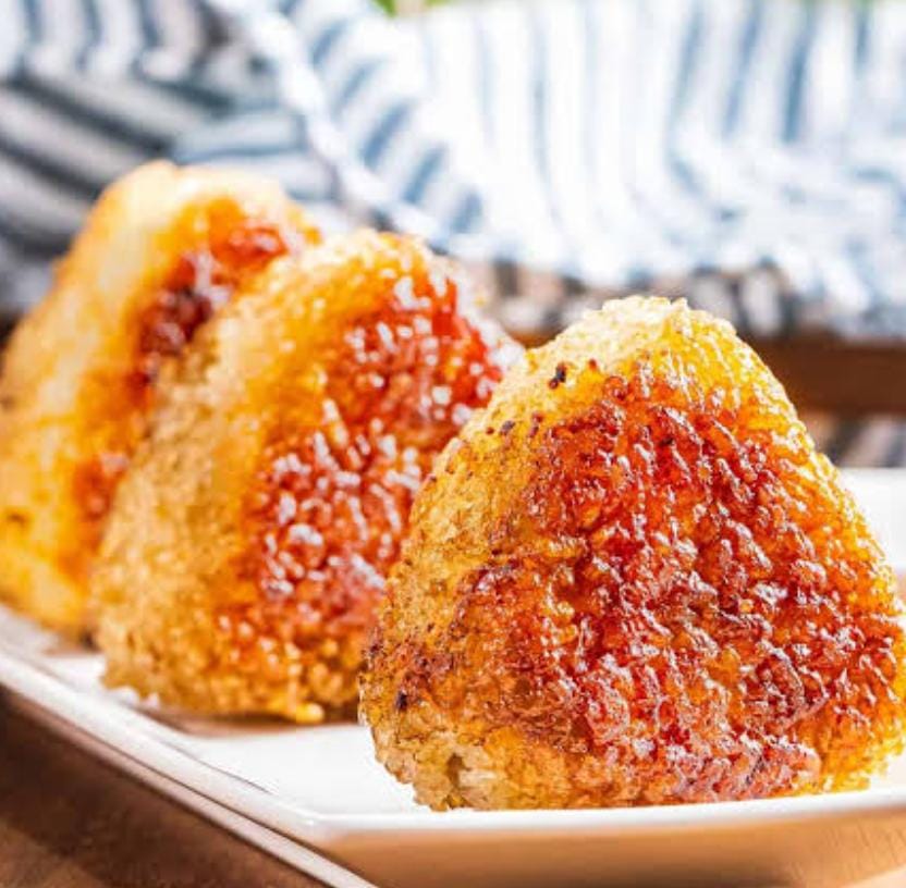 Hechos a base de arroz, con aguacate, pepino, philadelphia y con un poco de ajonjolí a los onigiris que no llevan empanizado.