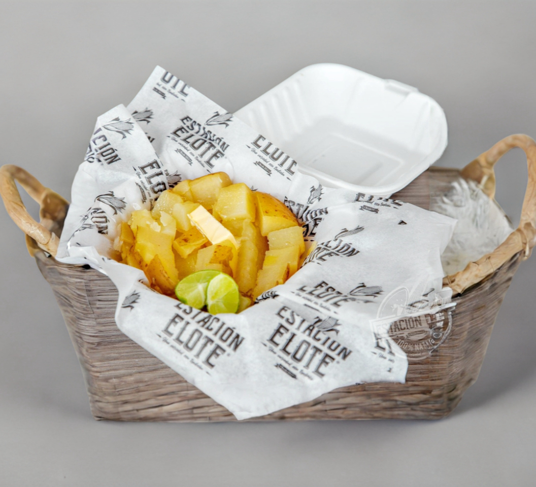Deliciosa combinación de 2 verduras preferidas Elote y Papá con queso, crema y mayonesa; elige tu chile favorito.