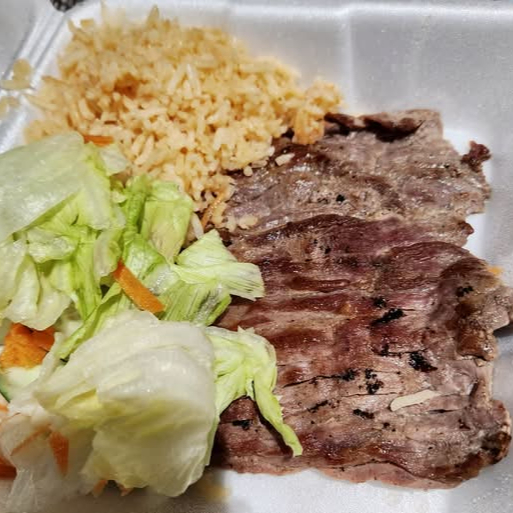 Filete de pechuga de pollo con el condimento de la casa. Acompañado de frijoles, ensalada y tortillas.
