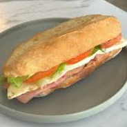 Lonche (en telera), de jamón. Lleva cebolla, jitomate, aguacate y chile.