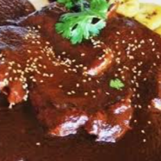 Pechuga de pollo desmenuzada bañada del rico mole rojo de la casa. Acompañado de tortillas, frijoles y cebolla desflemada.
