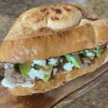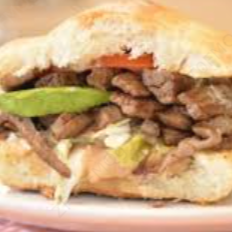 Lonche (en telera), con arrachera. Lleva aguacate, jitomate, cebolla y chile.