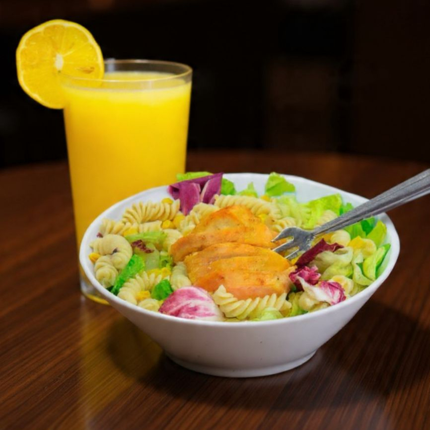 1 Ensalada de Pollo con Pasta + 1 Jugo de Naranja 1/2 L