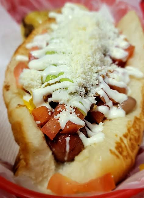 Pan artesanal, salsa mexicana, salchicha de pavo, tocino, aderezo y queso panela.