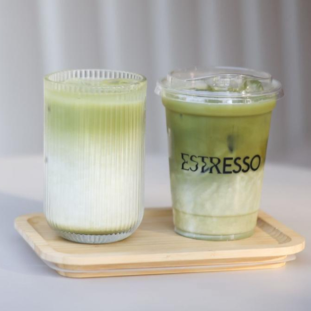 Fina mezcla de té verde matcha orgánico, leche vaporizada y preparación a elegir, 16 oz.