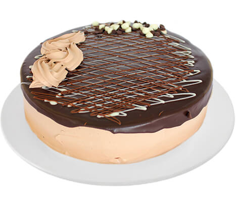 Pan de chocolate con un ligero baño de jarabe de cocoa, relleno de una suave crema de chocolate, cubierto de nuestro ganache especial y coronado con un caracol de chocolate blanco y crocantes tablillas de chocolate.