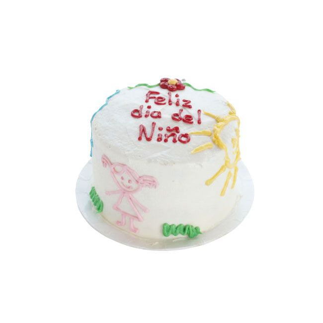 Tradicional y exquisito pan de zanahoria super suave con crocantes nueces, cubierto con una cremosa capa de queso crema y decorado con dibujos infantiles elaborados con crema de vainilla de colores