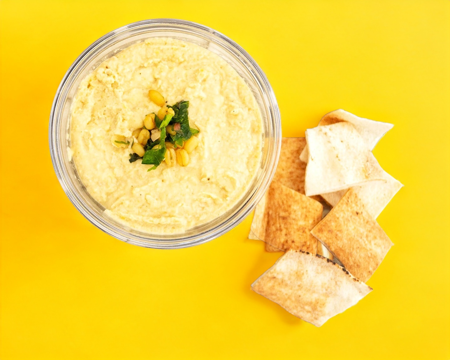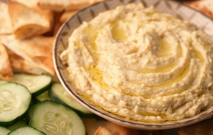 Puré de garbanzo con especias, acompañado de pan pita dorado