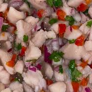 Delicioso aguachile de camarón en la salsa negra de la casa con pepino,cebolla morada y aguacate