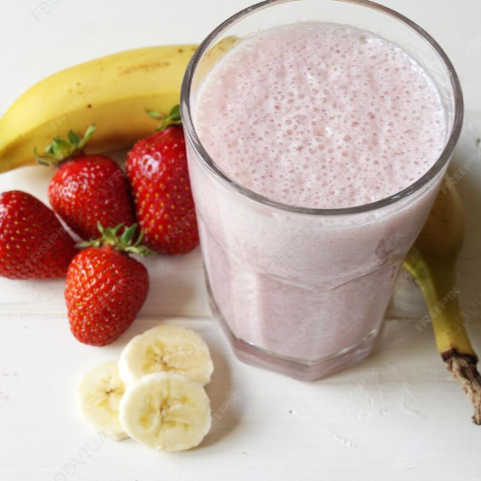 Elaborado con plátano, piña, jengibre, leche y hielos.