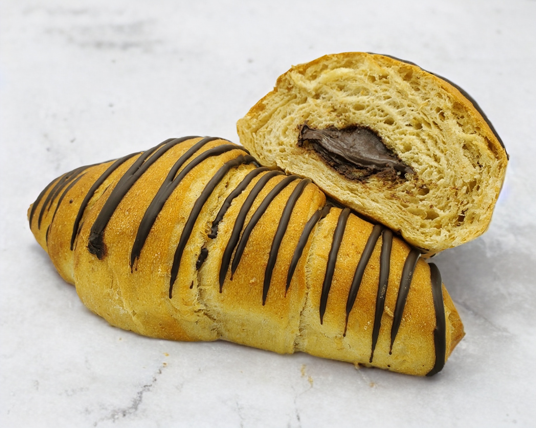 Relleno de crema de avellana, el pan hecho con harina integral, masa madre y endulzado con miel de piloncillo.