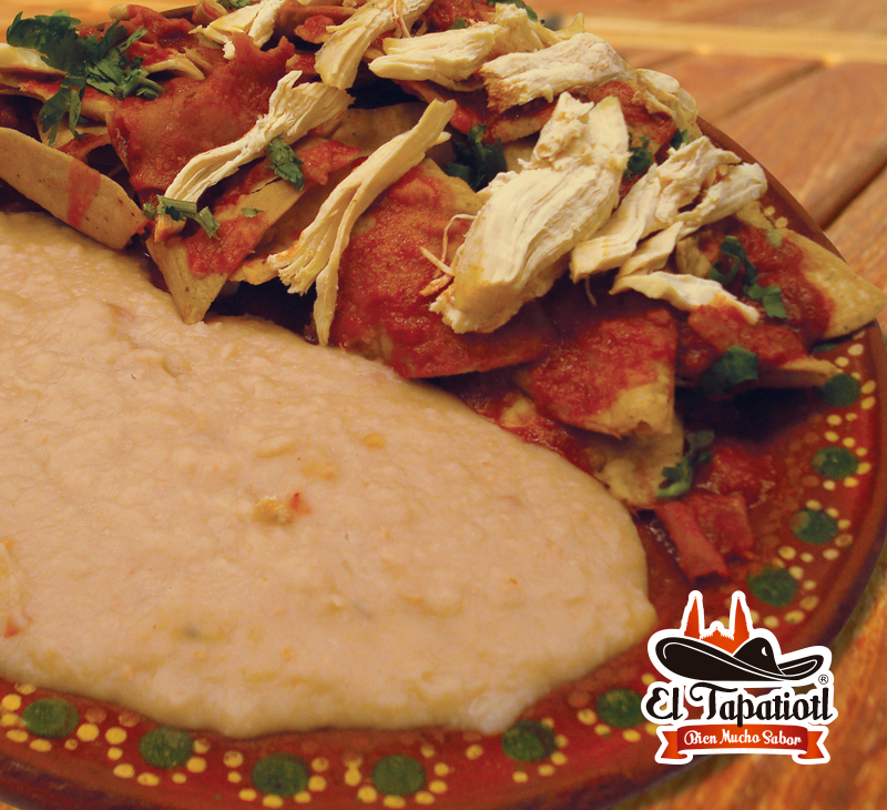 Chilaquiles rojos y frijoles fritos. Puedes agregar carne.