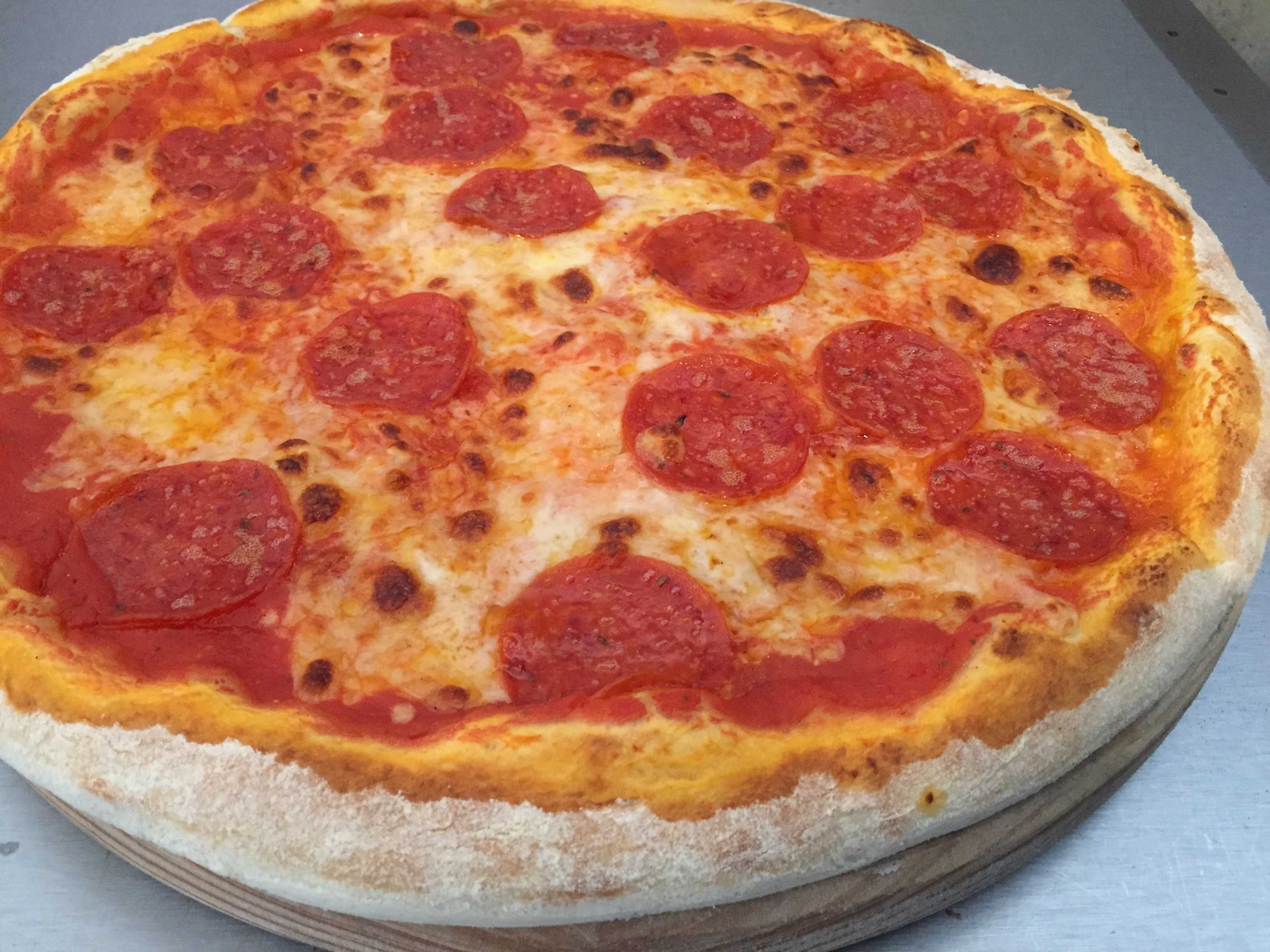 Pizza estilo napolitano deliciosa salsa de tomate ligeramente condimentada a la italiana queso mozarella y peperoni