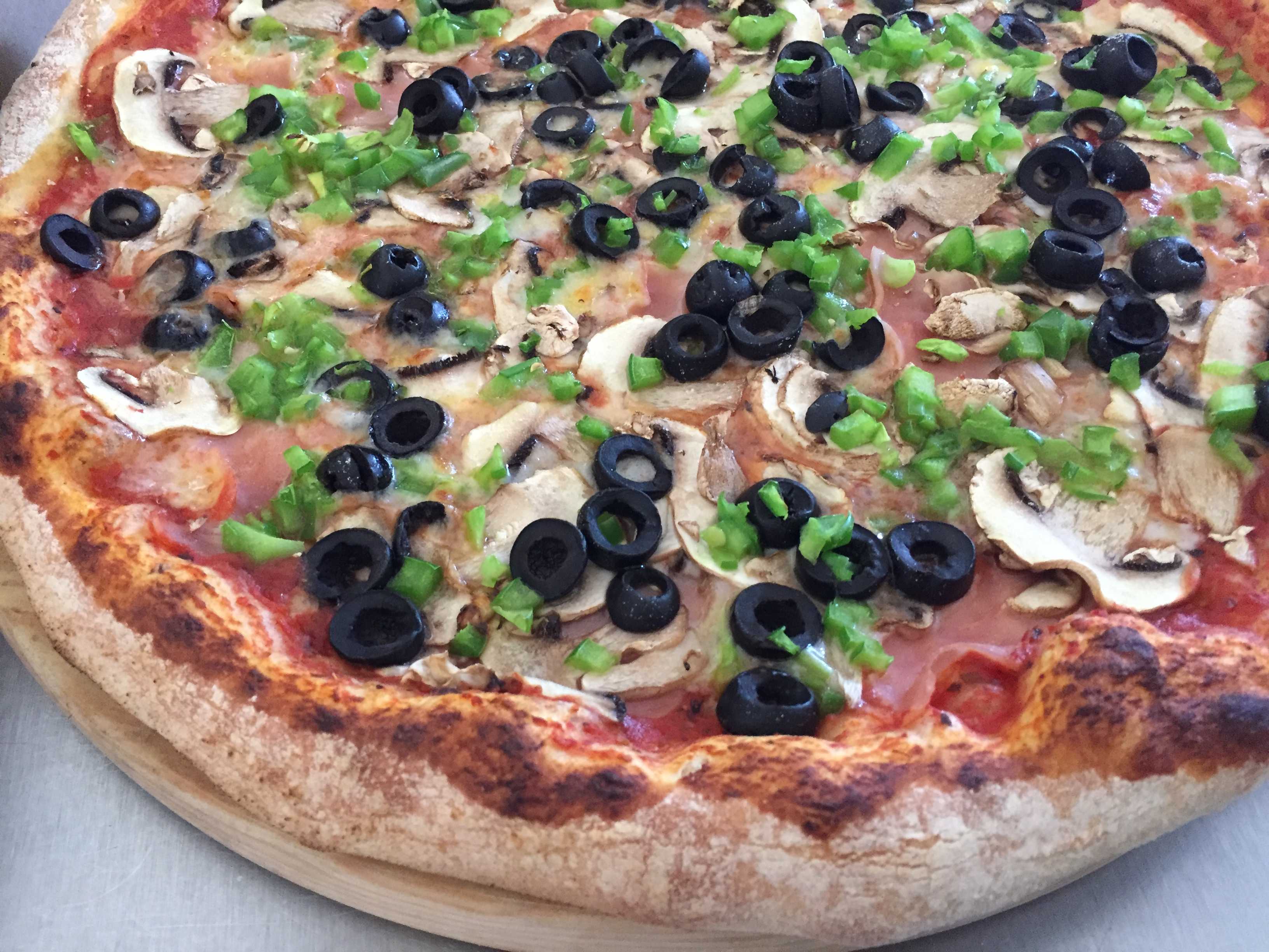 Hecho con nuestra deliciosa masa de pizza salsa de tomate, queso mozzarella y los ingredientes de tu preferencia.