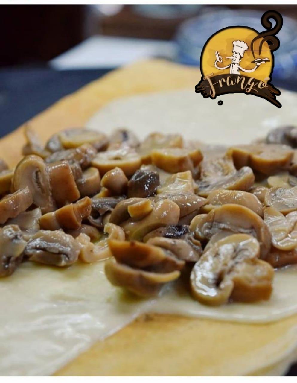 Bisteck, morrón, champiñón, salsa de la casa y queso gouda.