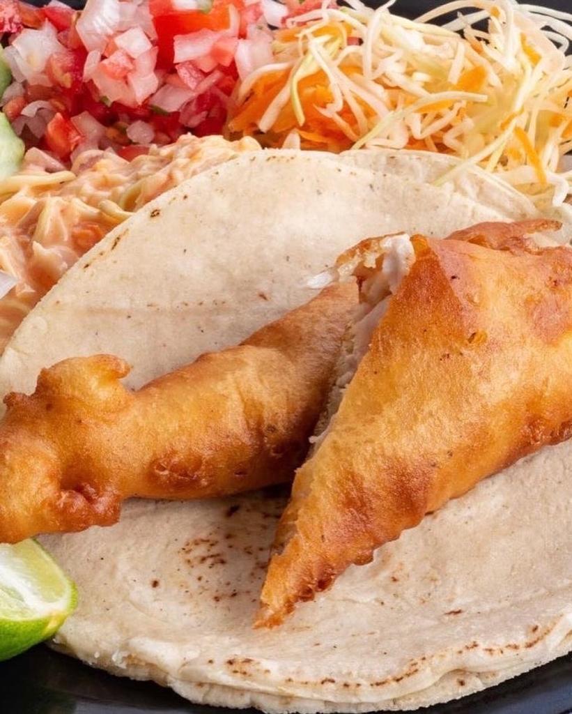 Doble tortilla de maiz con pescado capeado