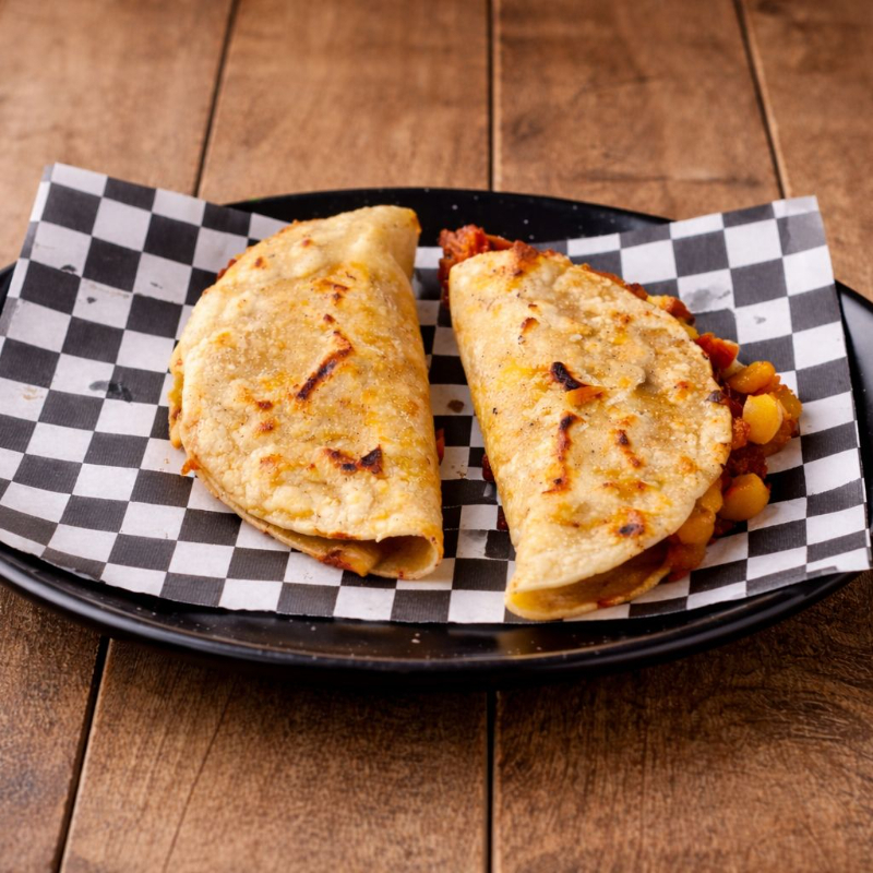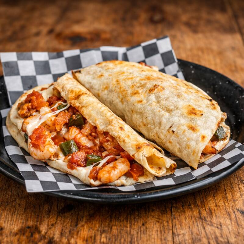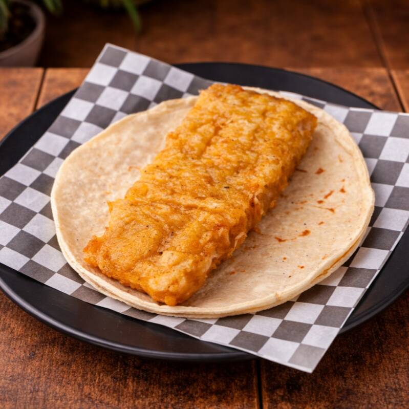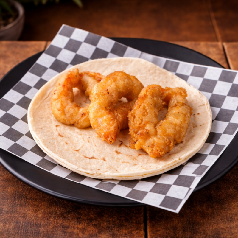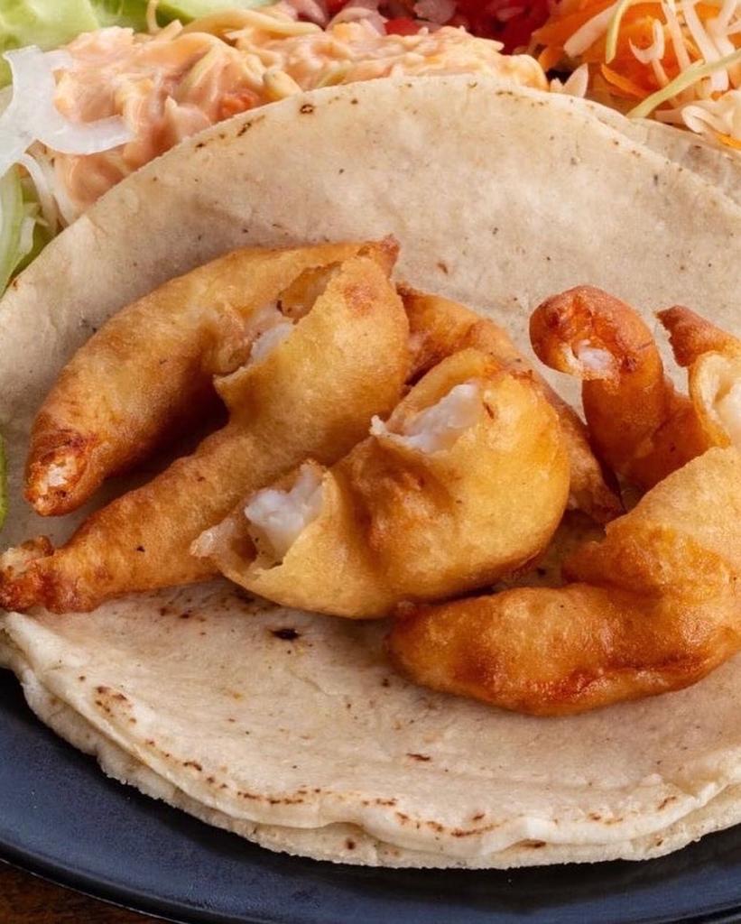 Doble tortilla de maíz con camarones capeado