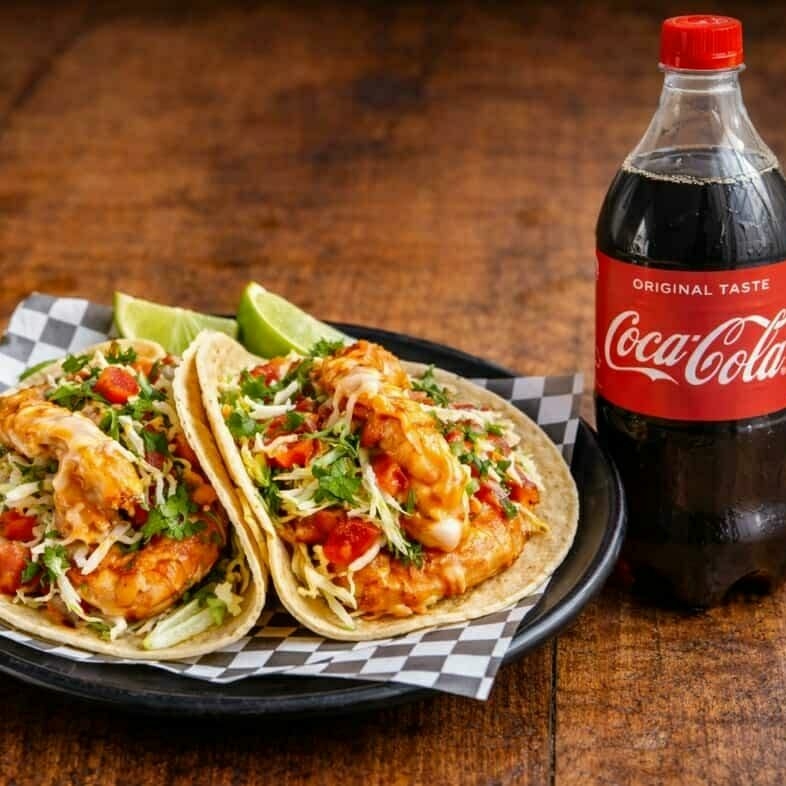Taco de pescado*1 + Taco de camarón*1 + Coca cola orignal 450 ml*1