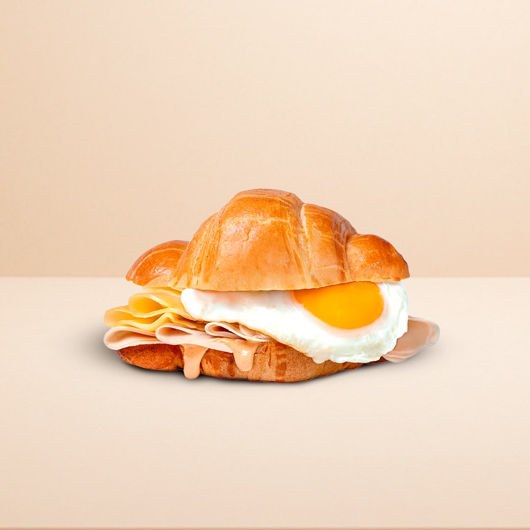 Delicioso criossant de pan hojaldre, acompañado de pechuga de pavo, huevo, queso gouda con un toque de aderezo chipotle.