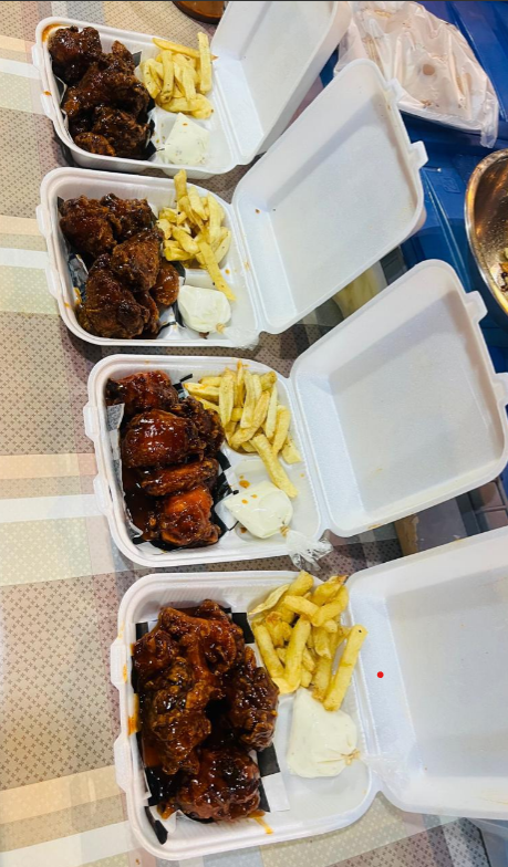 Deliciosas alitas preparadas con tu salsa preferida (6 piezas) acompañadas de papas a la francesa.