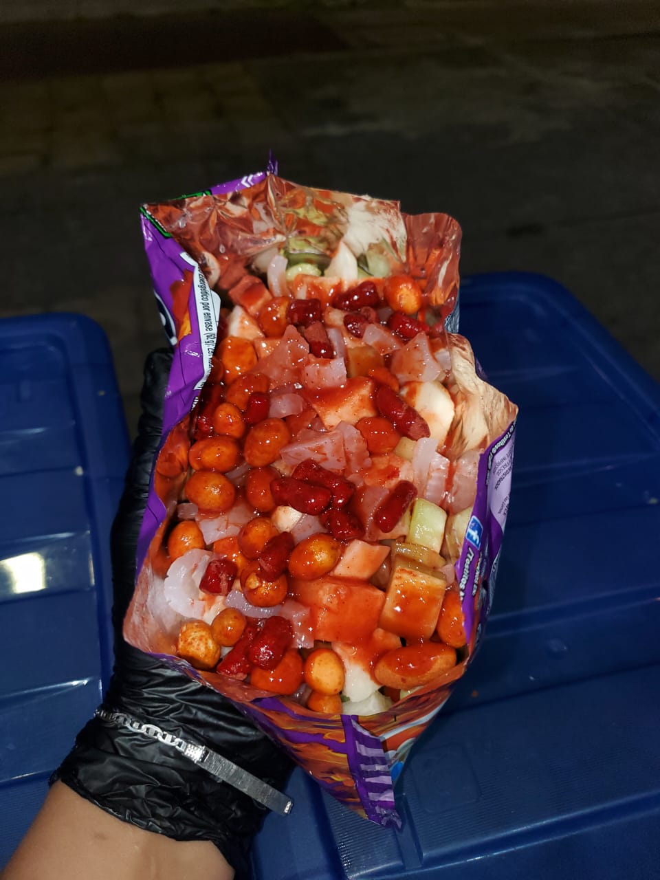 Tostitos preparados con (cacahuate japonés, tortolitos, pepino, jícama, cueritos, salchicha, clamato, salsa picante y salsas negras) a elegir.