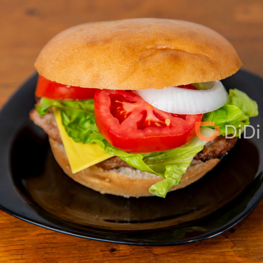 carne burger con queso pan con mantequilla, aderezo especial y sobres de catsup