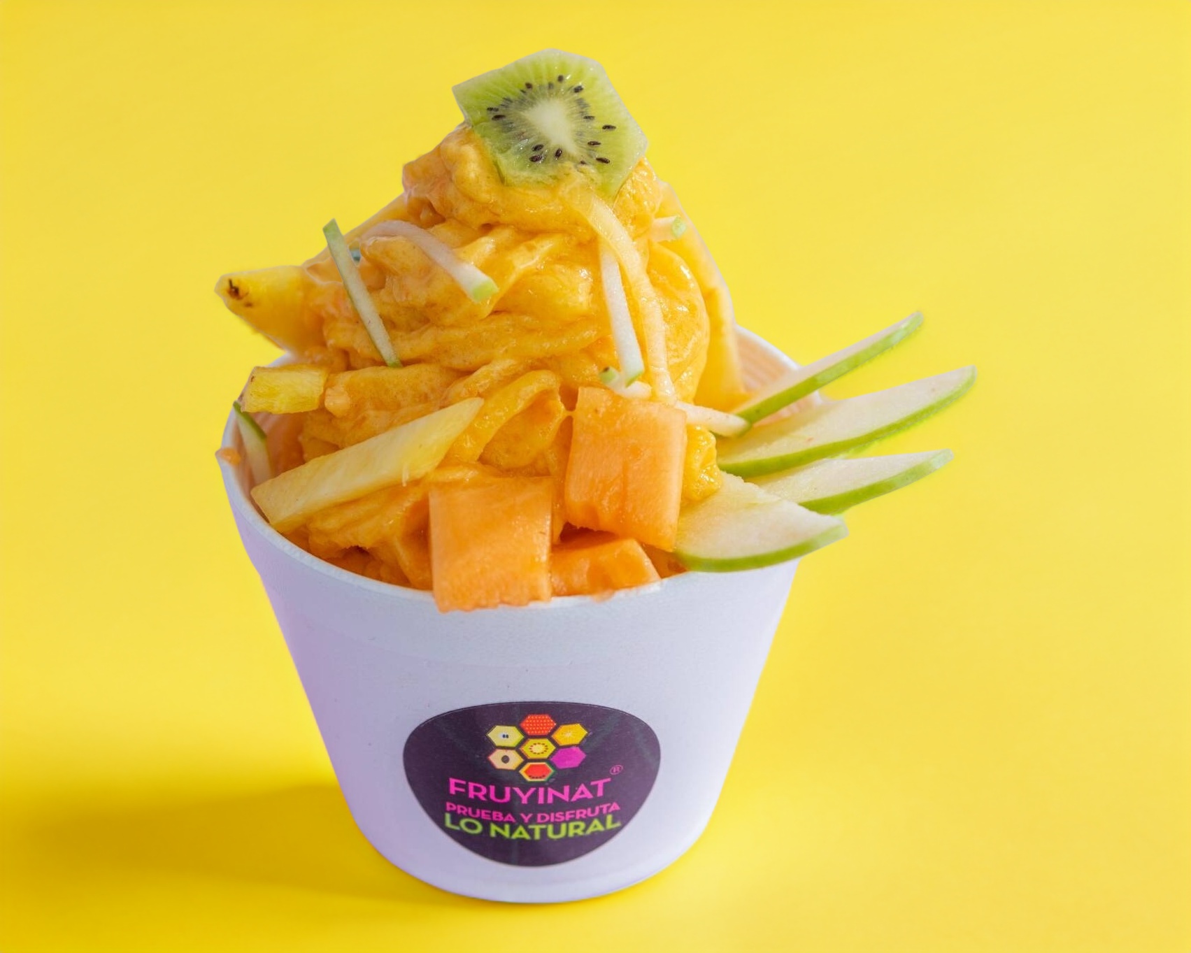Helado de yogurt a base de la elección de tus frutas favoritas, añade cereales y toppings de decoración.