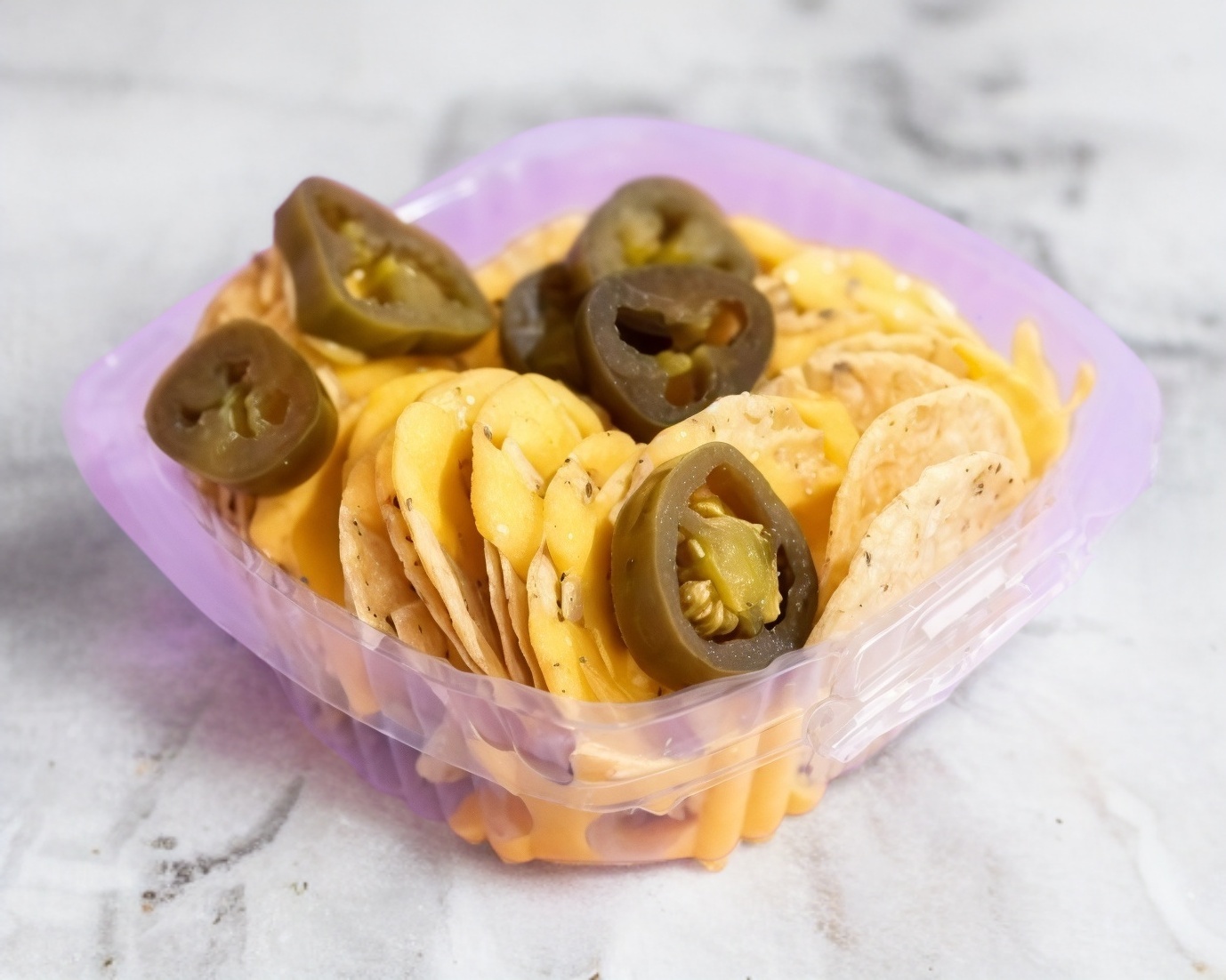 Deliciosos tostitos crujientes con queso chedar amarillo y un toque de jalapeños