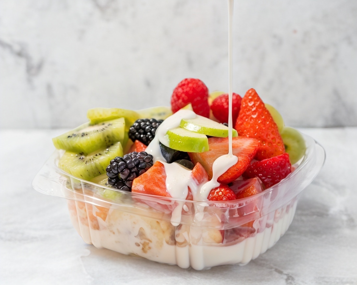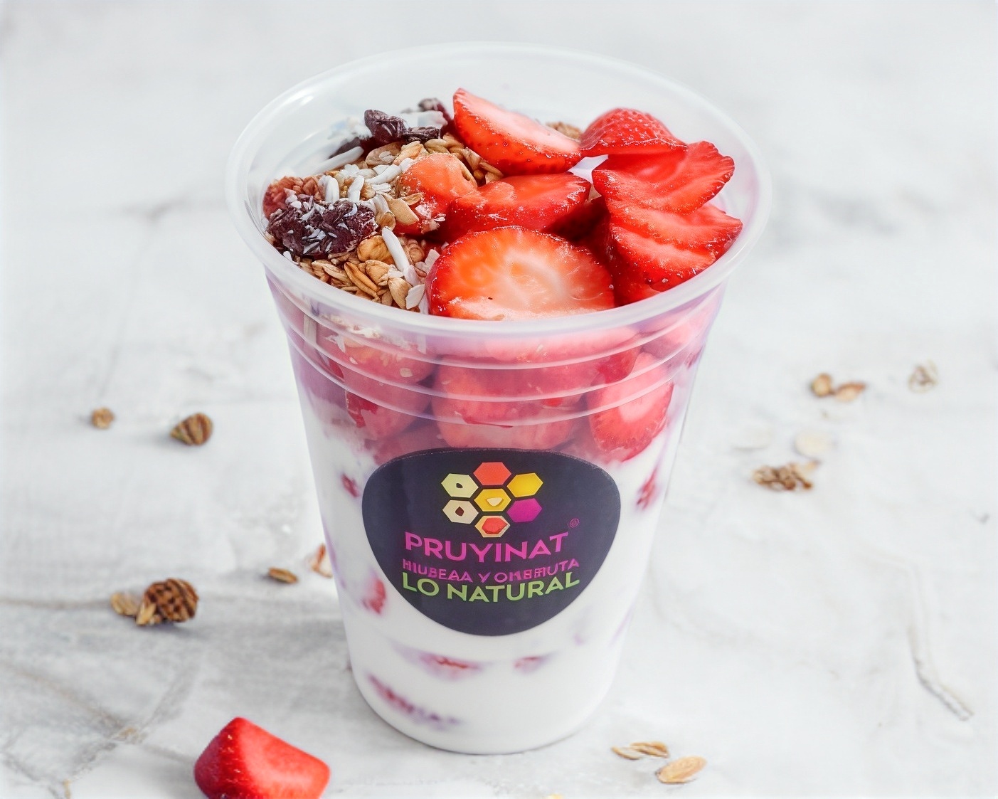 Vaso de yogurt con fruta a elegir.