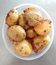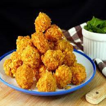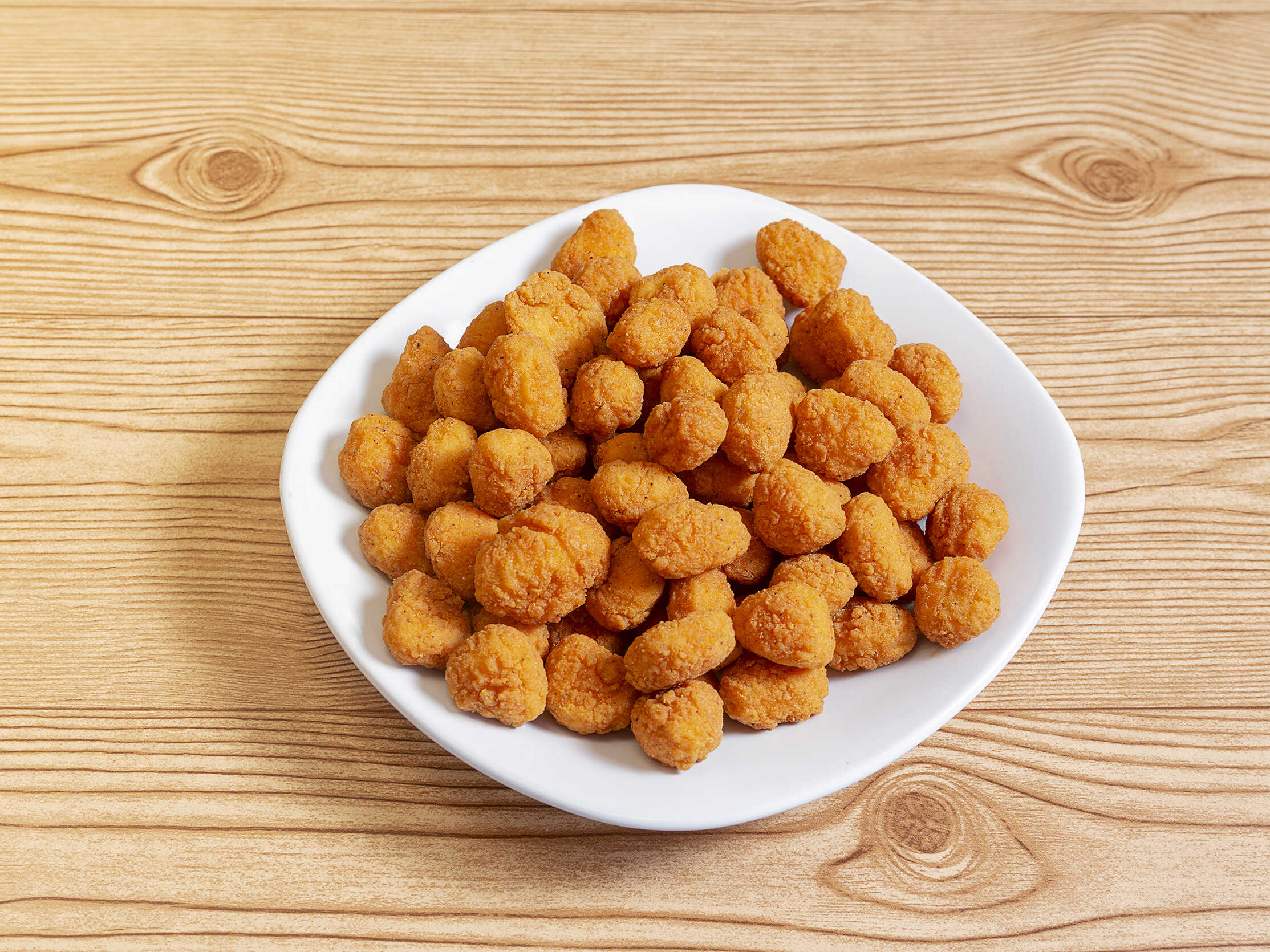 40 piezas de palomitas de pollo acompañadas con cátsup y mostaza o aderezo, ensalada y papas rostizadas