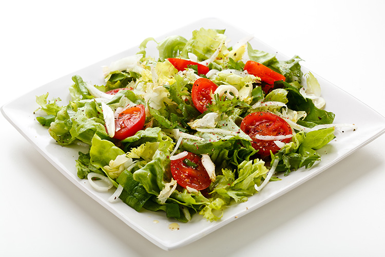 Lechuga fresca acompañada de jitomate, cebolla, limón y sal