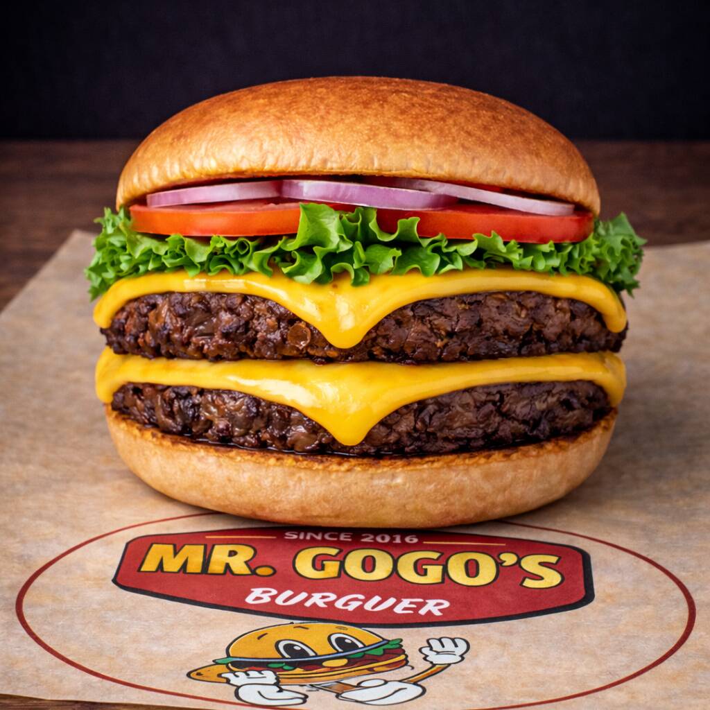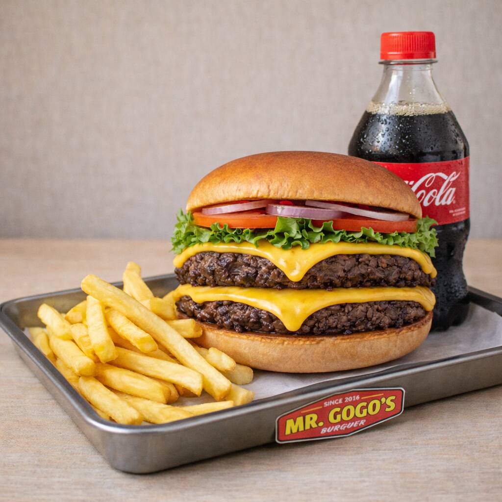Pan de papa, doble jugosa carne de res de 114 g, acompañada de doble queso americano derretido, lechuga, jitomate y cebolla.