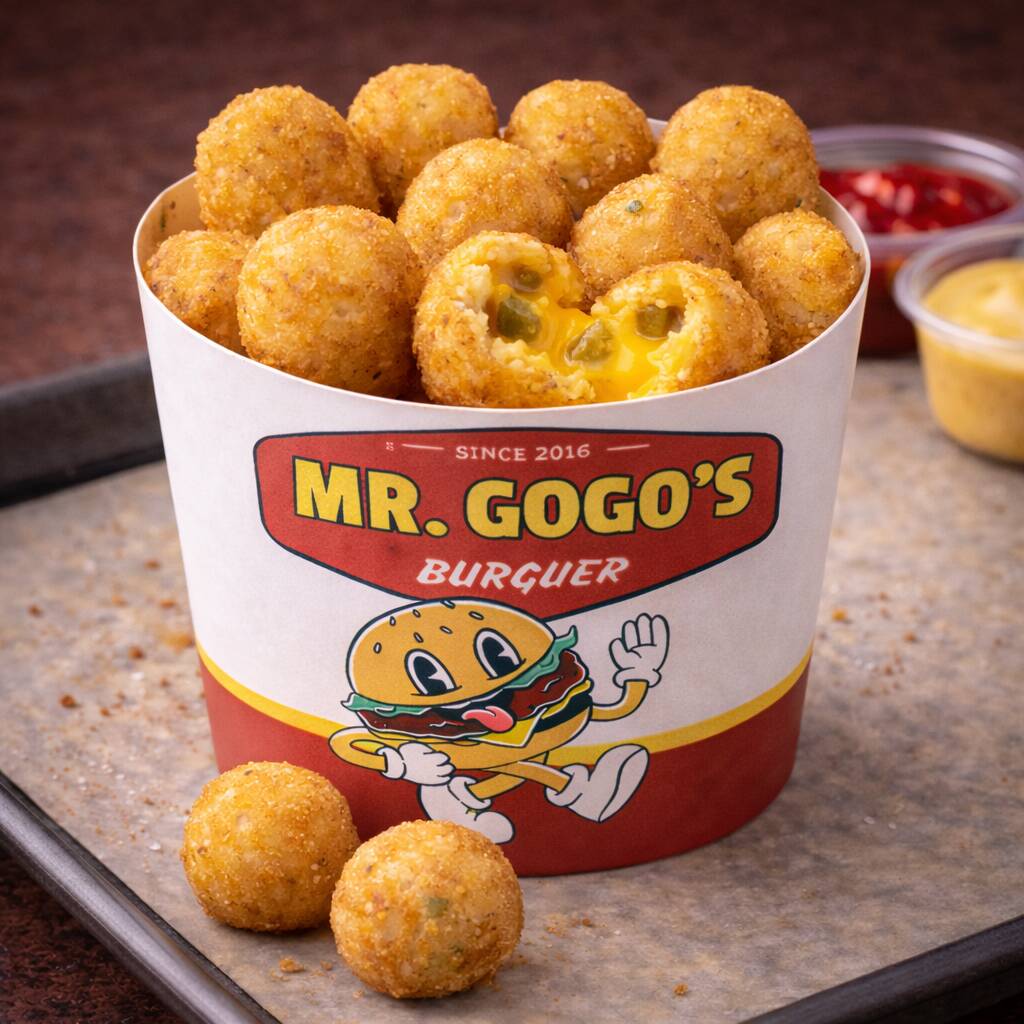 10 bolitas de patata con relleno de queso cheddar y trocitos de jalapeño.