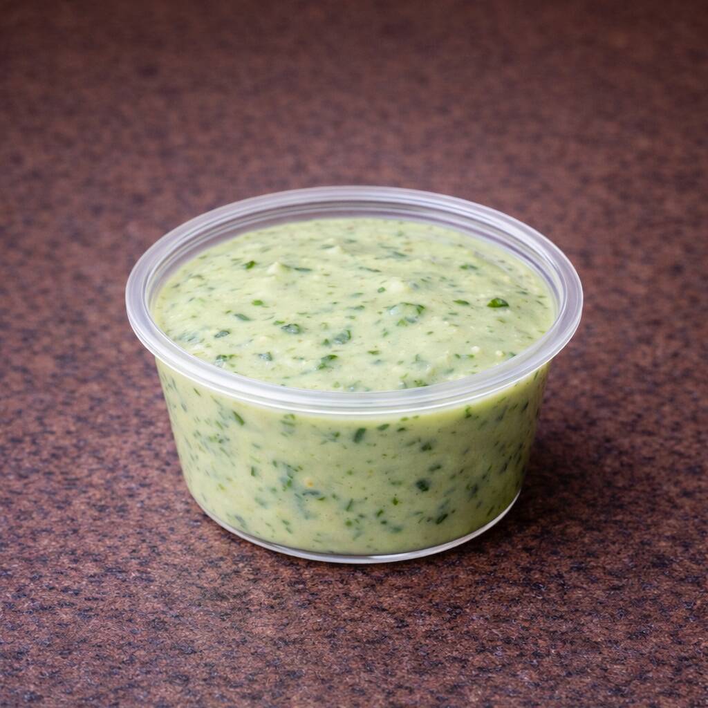 Aderezo cremoso con sabor fresco a cilantro. Suave y delicioso, perfecto para papas o hamburguesas.