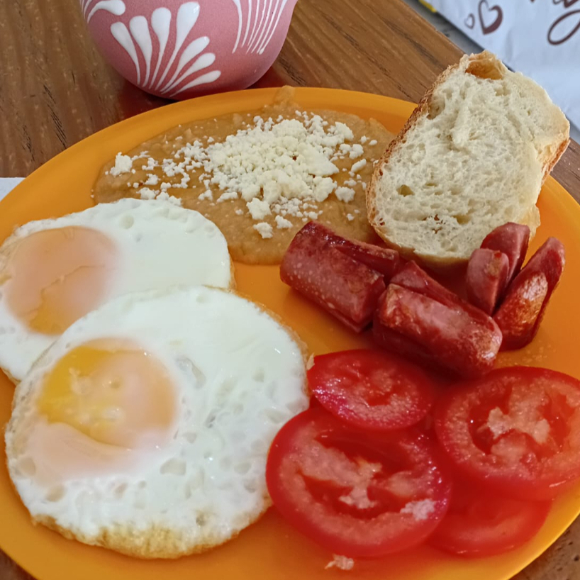 La porción son 2 Huevos acompañados de frijoles.