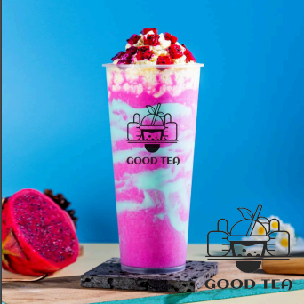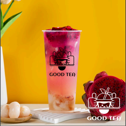 Contiene mango, pitaya, kiwi, lichi, piña, naranja, uva, durazno, sandía, fresa. Base de té Grande (700 ml).