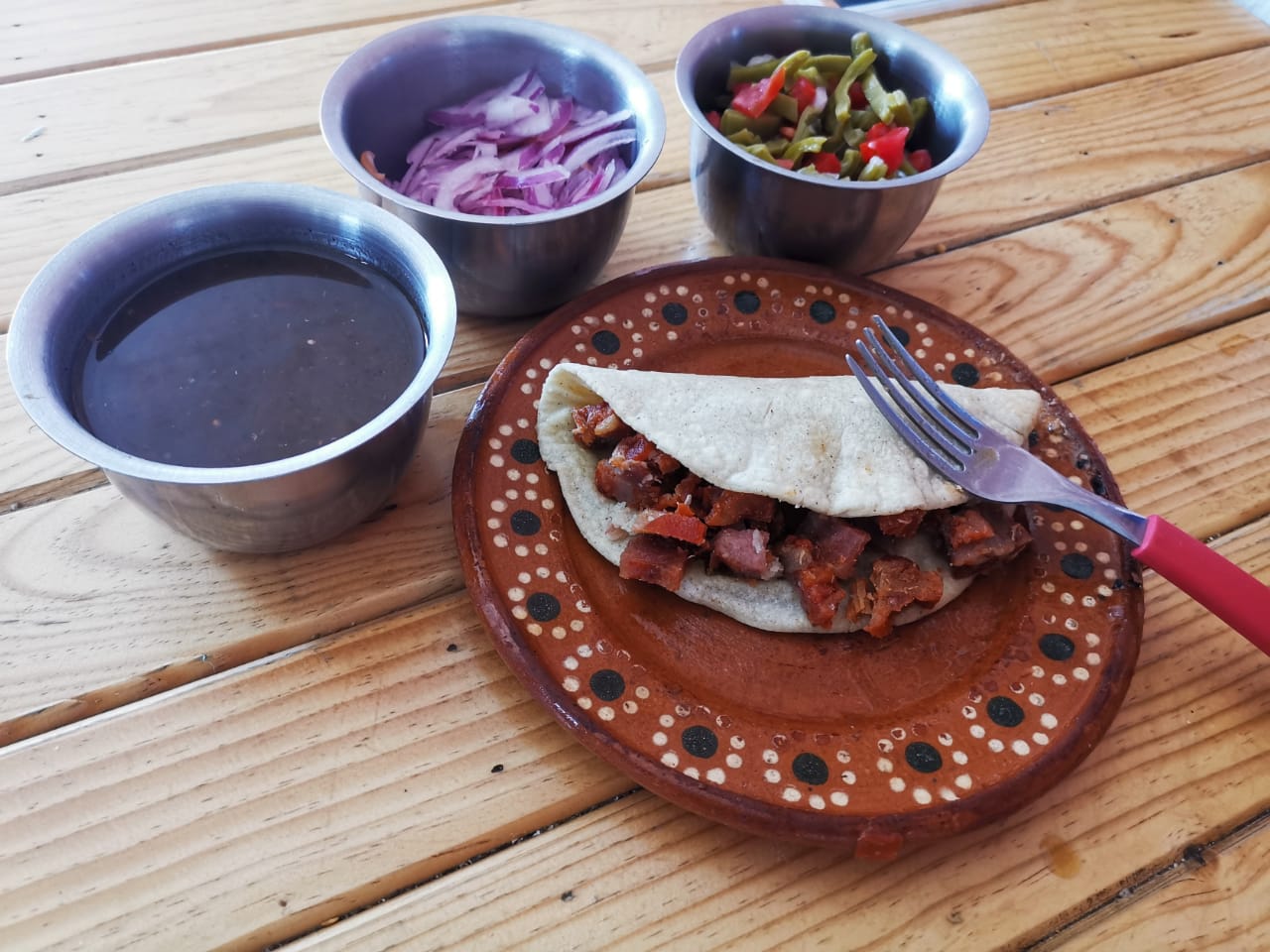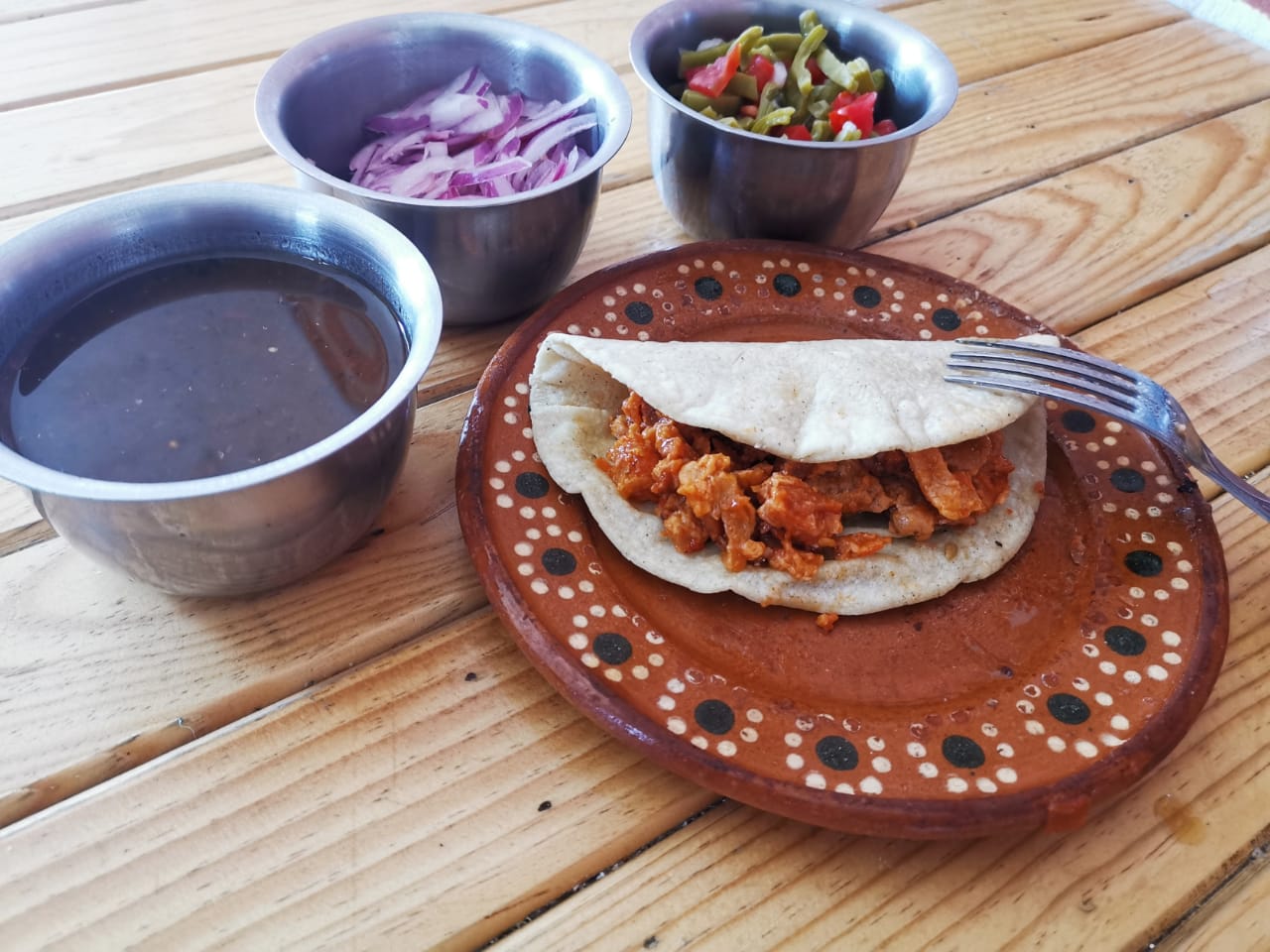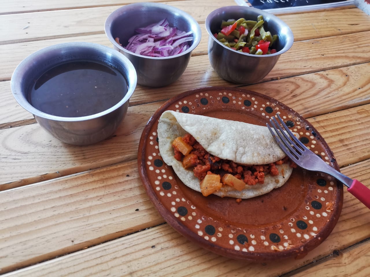 Café de olla individual*1 + Taco de Chicharron en Salsa Roja*3