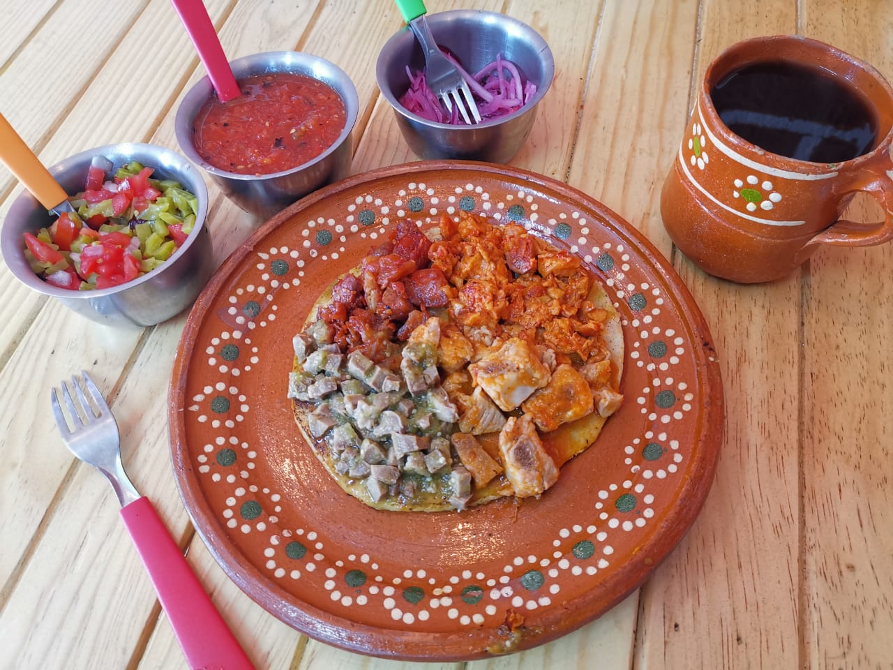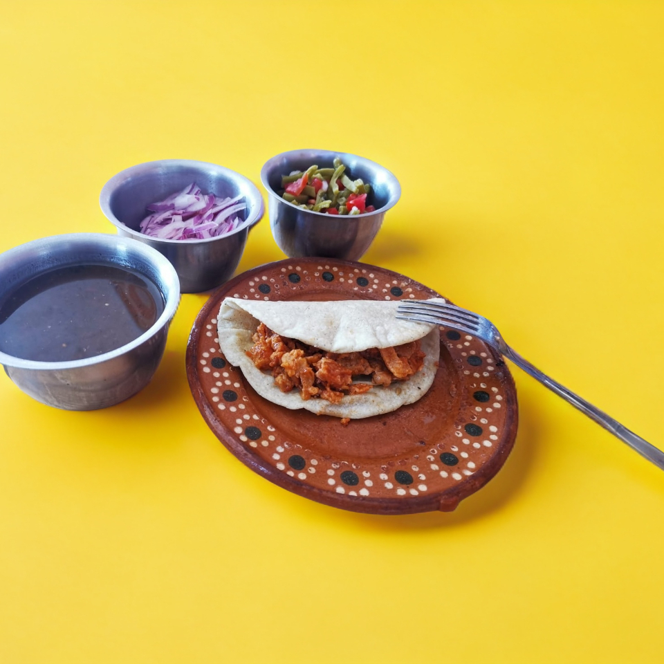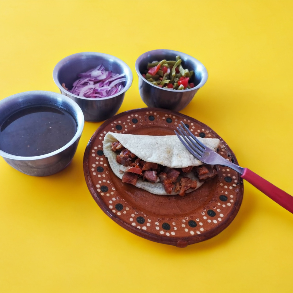 3 Taco de Chicharrón Salsa Roja + 1 Café de Olla