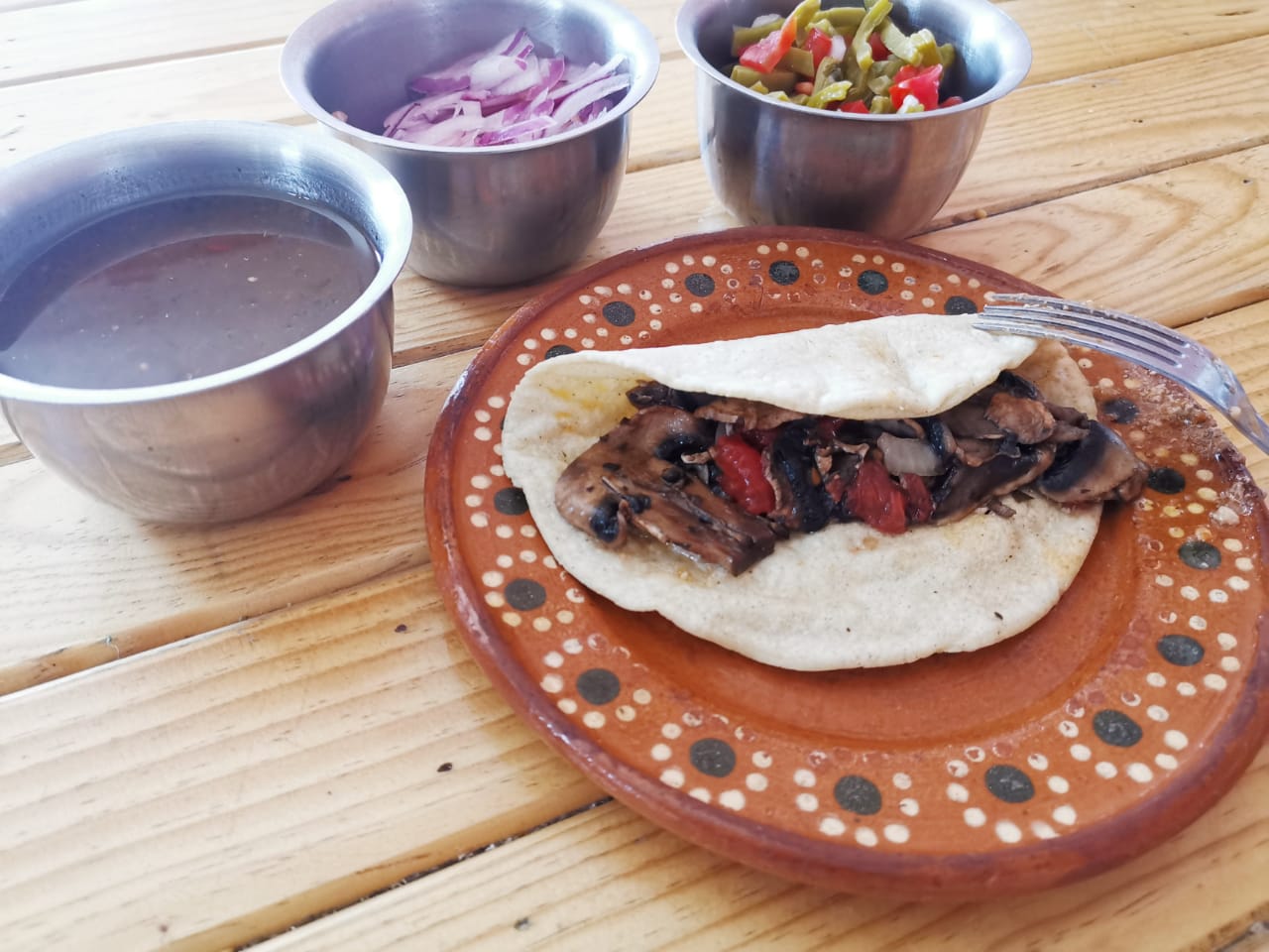 Medio litro de guisado , acompañado con chile , cebolla y nopales