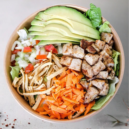 Ensalada fresca con pollo a la plancha sobre lechuga y zanahoria, coronada con pico de gallo, crujientes tiras de tortillas y un irresistible aderezo Santa Fé