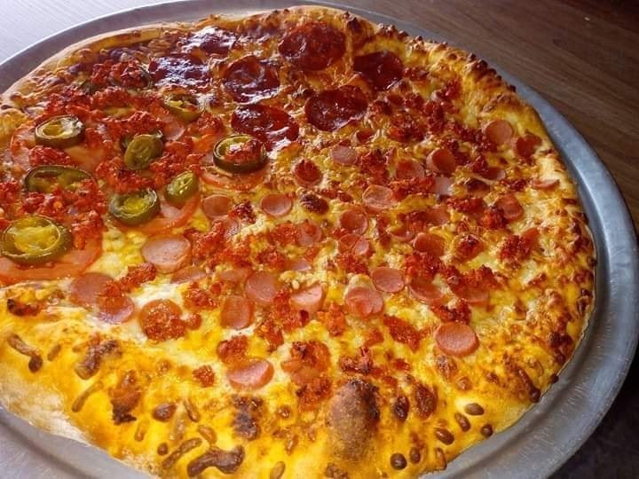 Pizza de 35cm dividida en 10 rebanadas con 2 ingredientes a elegir.