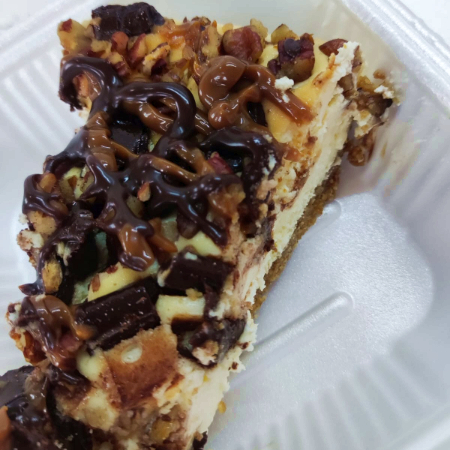 rebanada de cheesecake con chispas de chocolate y nuez (postre costco)
