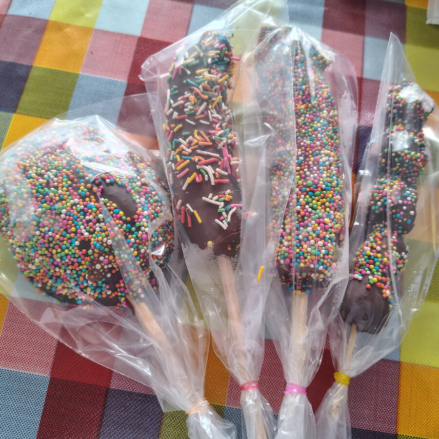 FRUTA CONGELADA BAÑADA DE CHOCOLATE Y GRANILLO