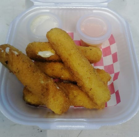 5 Piezas de dedos de queso acompañado de dip aderezo ranch.
