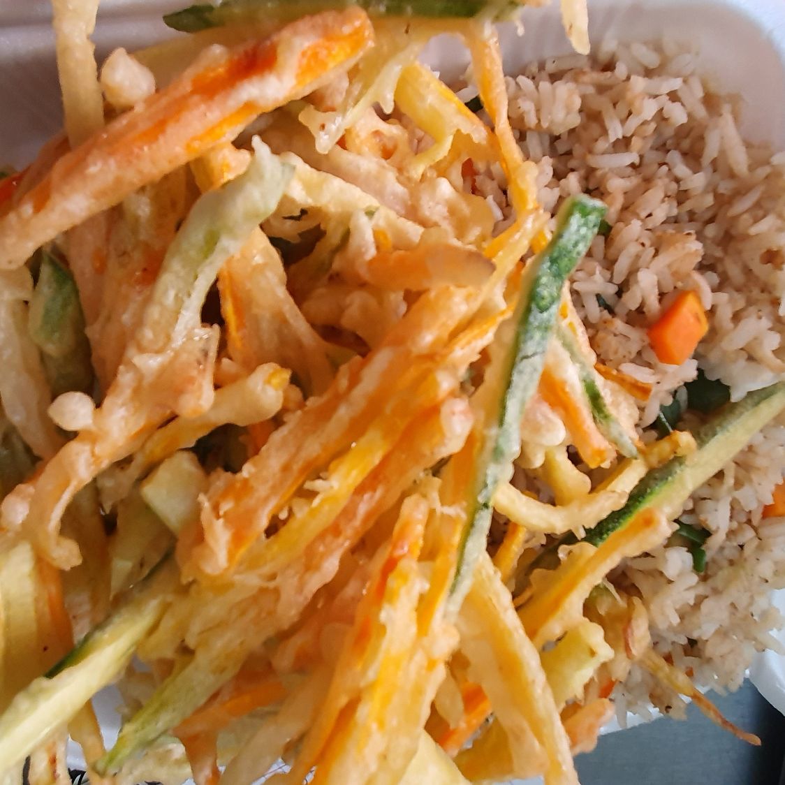 Verduras capeadas con fina pasta oriental