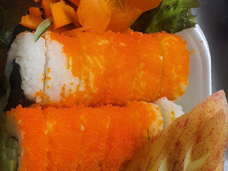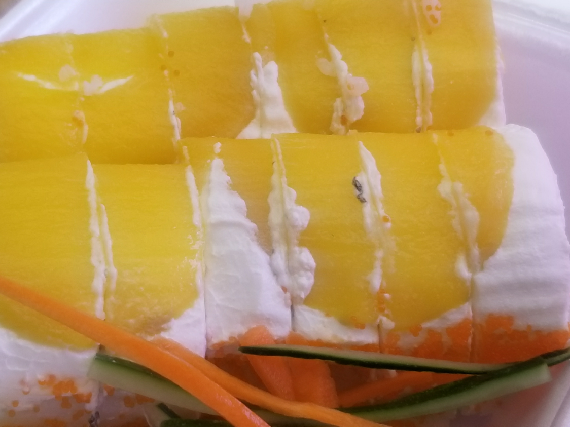 Hueva de pez por fuera y relleno de pepino, aguacate y philadelphia