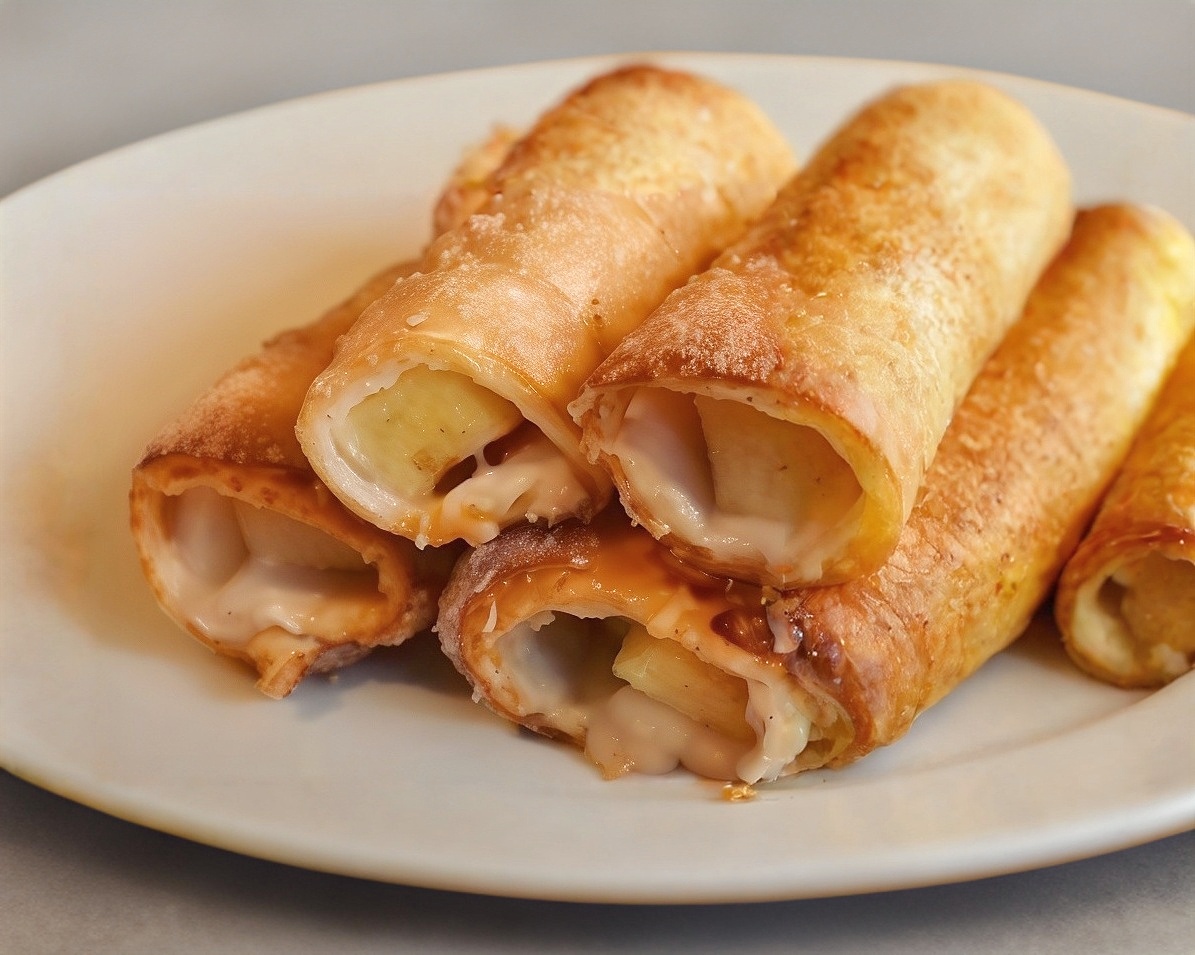 Rollitos rellenos de mermelada de manzana verde y Philadelphia, espolvoreamos con azúcar y canela.