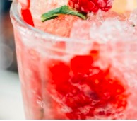 Cóctel a base de frutos rojos, calpico, jengibre y agua mineral