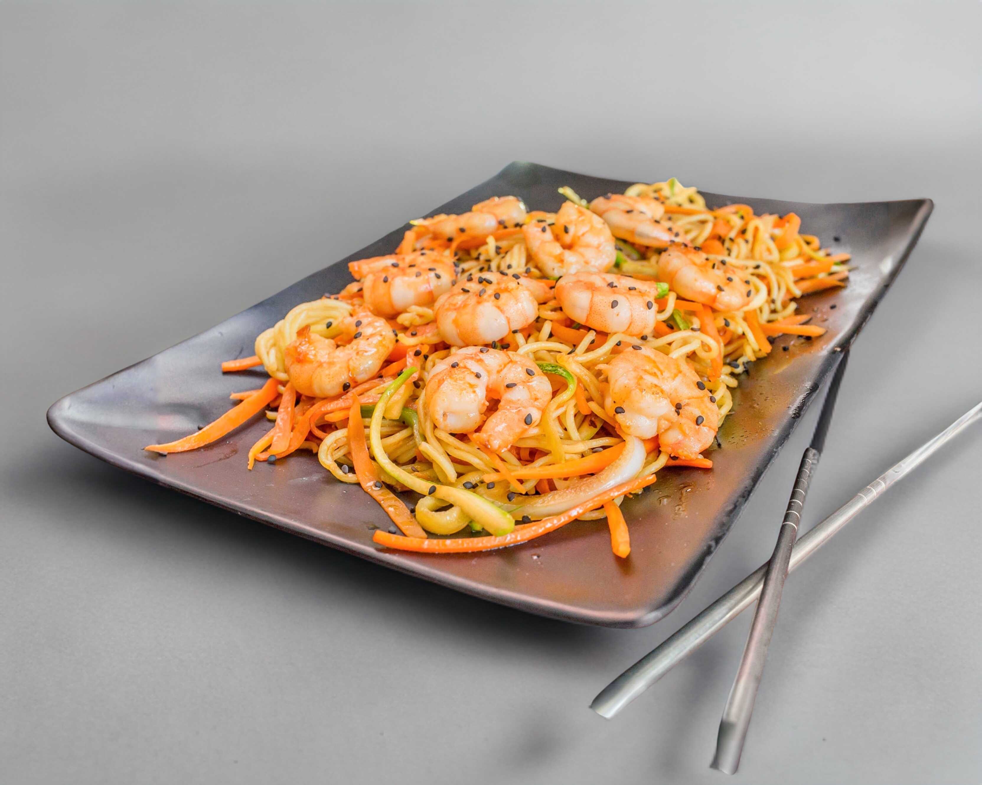 Pasta de Yakisoba con verduras mixtas a la plancha con la proteína de tu elección.