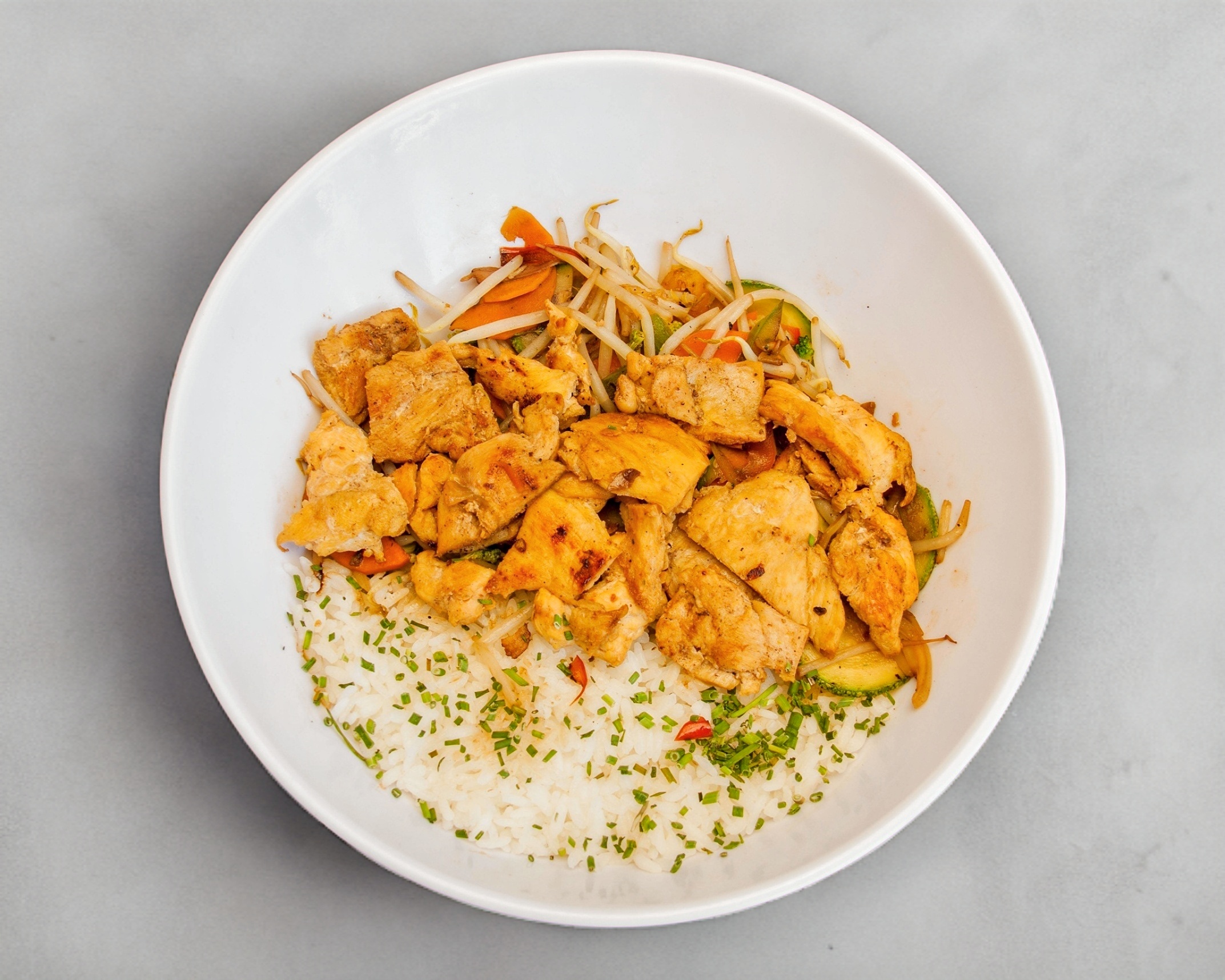 Verduras mixtas con la proteína de tu elección, sazonadas con un toque de salsa teriyaki.